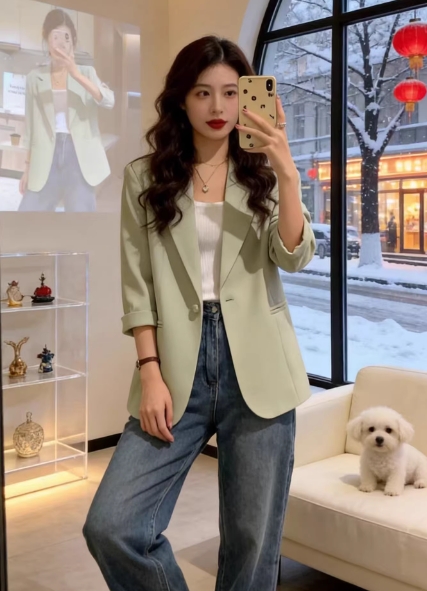 • 商品名称:短款小西装外套女2026春秋新款韩版薄款小个子休闲七分袖西服上衣