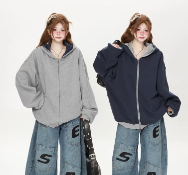 • 商品名称:美式重磅双面正反两面穿拉链连帽卫衣外套女开衫春秋宽松情侣上衣